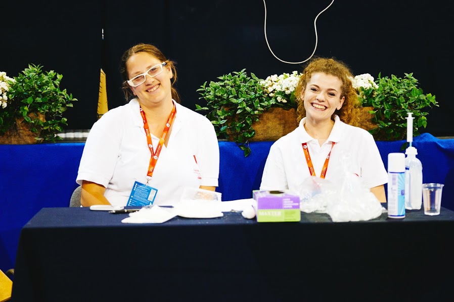 The guests from the Yuki karate school from Brežice in Slovenia did an impressive demonstration with sabres, breaking wooden boards. The medical volunteers were left speechless by their stunts. Katja Avsec is a nursing student from Slovenia, and Tina Krmpotić is a sports physiotherapist from Zagreb. During the karate competition in the last few days, they treated, together with their fellow pharmacists and professional doctors, what were mostly nose injuries. They both agreed that this was an invaluable professional experience for them. They revealed to us that karateists fake injuries less than, for example, teams sports players. They were amazed by the confidence, discipline and precision of all karateists. And the winners truly had such traits! Congratulations!
