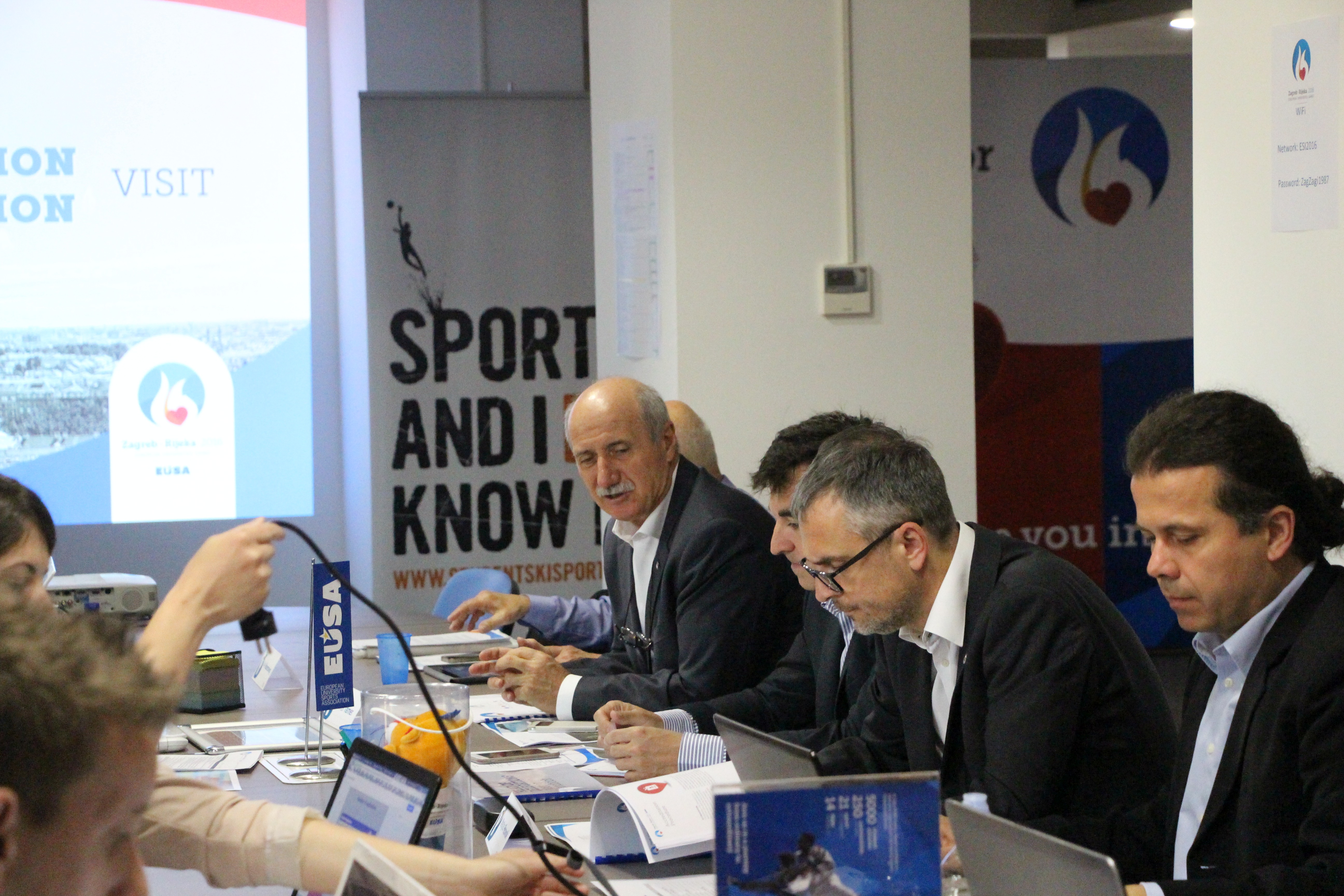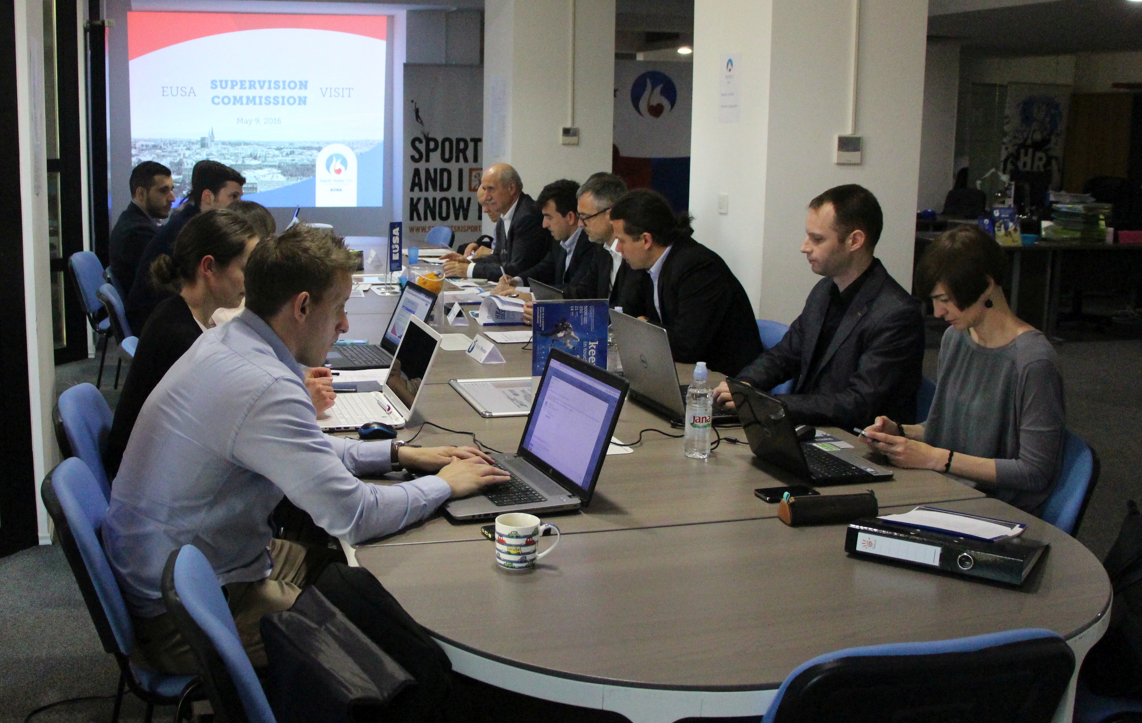 Delegation of the European University Sports Association (EUSA) is visiting the Croatian cities Zagreb and Rijeka between May 9 and 12, 2016 for the final supervision commission visit before the start of the European Universities Games EUG2016 which will take place this summer in the before-mentioned cities.