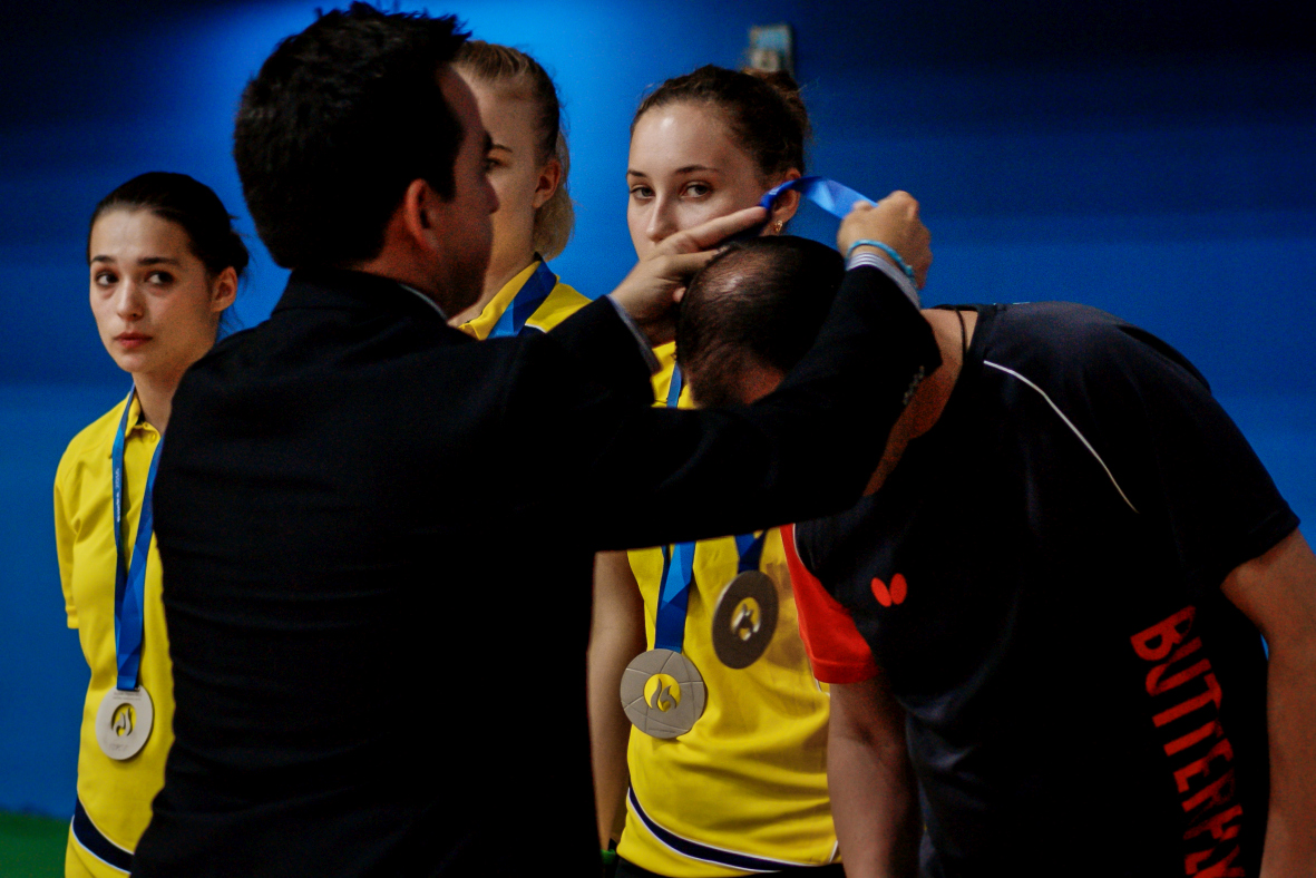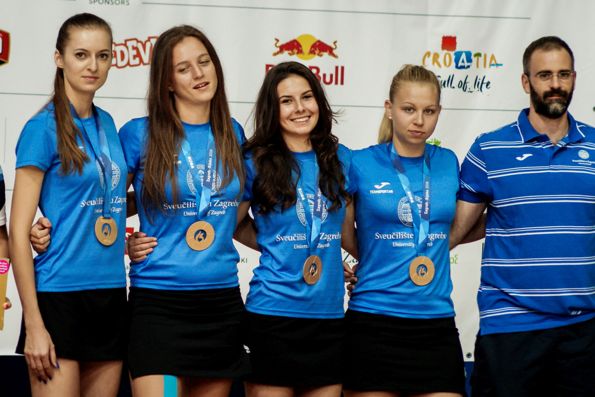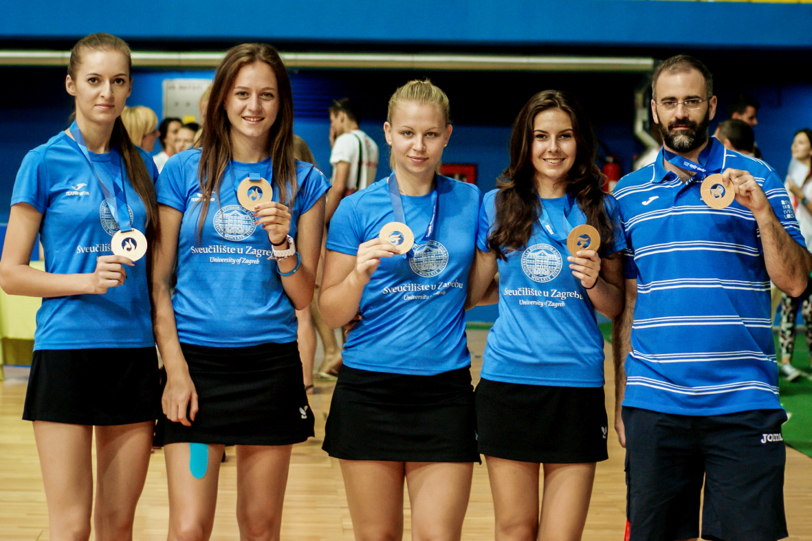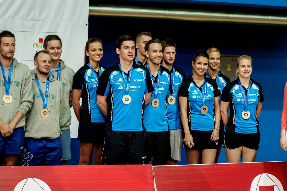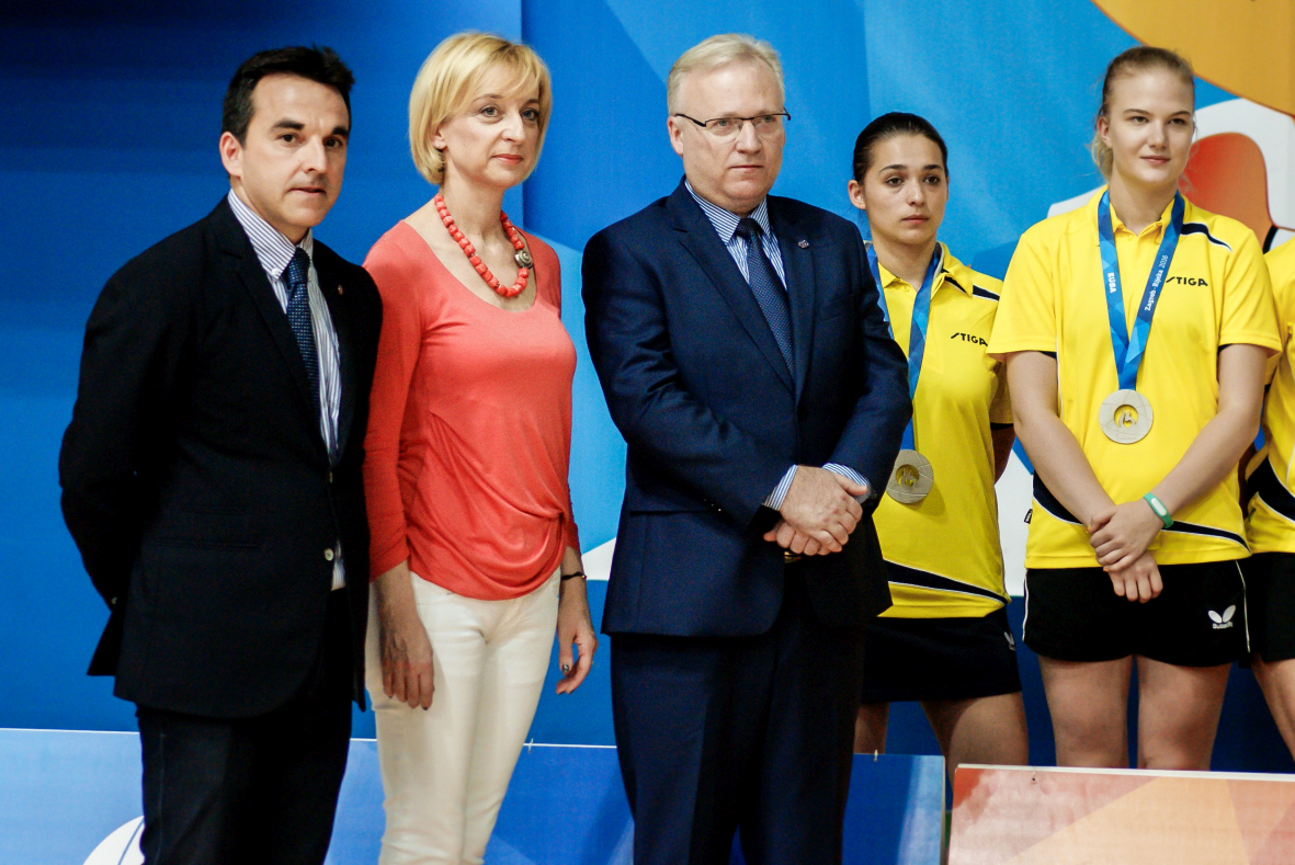 Ivana Čuković – Blagić, Prorector of the University of Zagreb, Aitor Canibe Sanchez, member of the EUSA Executive Committee, and Andrzej Hrehorwicz, EUSA Technical Delegate for table tennis, handed them their medals.